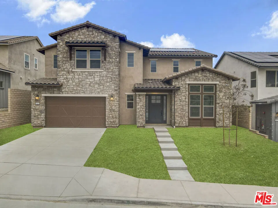 Luxurious Brand-New Modern Home sitting in Deerlake Ranch with stunning, unobstructed mountain and city views showcasing the most magnificent sunsets you will ever lay your eyes on...Welcome to your dream home nestled in the exclusive Deerlake Ranch gated community. This remarkable property offers 4,507 sq. ft. of living space, with an additional 200 sq. ft. balcony. Inside, the home boasts beautiful flooring throughout, modern finishes and elegant chandeliers that enhance its sophisticated charm. The open concept gourmet kitchen, which boasts top-of-the-line appliances, quartz countertops and an enormous waterfall breakfast island, making it a chef's paradise .This well-equipped residence features state-of-the-art smart home amenities, including 8 hard wired exterior security cameras, a video doorbell, built-in ceiling speakers for an enhanced audio experience, and two home theater systems equipped with 5.1 surround sound and subwoofers for movie nights, pre-installed enterprise-grade Wi-Fi access points ensure robust and reliable home networking. The first floor includes a welcoming foyer, a spacious living room, a family room, a modern open kitchen, a powder bathroom, and multi- gen suite (optional 6th bedroom), perfect for entertaining and daily life. The second floor features a luxurious primary suite, two walk-in closets, a large bathroom with a large soaking tub and shower and sitting area/office. Step out onto the large balcony to enjoy panoramic views of the surrounding hills and city. This outdoor space is perfect for relaxing or entertaining while soaking in the scenery. Outdoor space also has an access point to the oversized loft/family room. Three additional bedrooms, three bathrooms and walk-in closets for family and guests are also located on the second floor.. The spacious hallway adds to the open feel of the upper level. The property features a large backyard with ample space for outdoor activities and gatherings. The delightful front facade with stone walls adds to the home's curb appeal. Other features: SOLAR, Ample storage space. The community has a gorgeous club house, pool with stunning panoramic views, outdoor fireplace, game rooms, gathering areas with fire pits and much more. Deerlake Ranch has many trails for hiking, biking, horseback riding, which connect to the beautiful Santa Monica Conservancy. Don't miss the opportunity to lease this exceptional home in Chatsworth . Landscape/Hardscape plans have been submitted to HOA and will begin ASAP. Window treatments will be installed next week! Schedule your viewing today and experience the perfect blend of luxury and functionality!