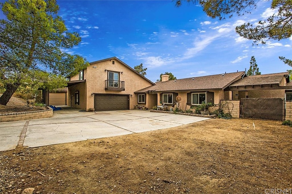 Pinon Hills rural ranch living w/ all the amenities! Open 3,333 sf floor plan with 6 bedrooms & 3 baths. Modern farmhouse style dream home. Approximately 3 acres completely fenced & cross fenced and a view as far as you can see. This property is ready to go! Pull through 2 car garage, huge carport, horse stalls, goat pen, chicken coup, green house, and workshop. Take a dip in the gorgeous salt water pool when the ranch'n is done! The interior is a perfect for entertaining w/ a beautifully and recently upgraded kitchen & den. The kitchen is complete with lovely cabinets, custom range hood, granite counter tops & a garden window over sink. Plenty of seating along the breakfast bar which over looks the den w/ wood burning stove. There are 4 beds downstairs including the master with double sinks & attached sun room. Laundry room off kitchen w/amazing use of space. Upstairs are 2 more bedrooms as well as another large family area and wood burning fireplace. All new windows & sliders. Limited obligation improvement Bond, Sanbag Hero Program, High Efficiency HVAC -Lennox w/3 zones; Air Source Heat Pump & Duct Replacement paid at time of property taxes. Easy access to rear of property w/2 levels. 20' Feed Shed w/rollup man door; tack shed; goat house; chicken house; shop/dog house. Pool - new plumbing, tile & salt system. Electric & water to the back of the property; all new doors in house; 5 solar tubes; recently painted exterior, trim & stucco; wrought iron front gate w/opener; carport w/new roofing; covered back patio.